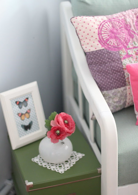 Üstünde gördüğünüz iki yastıktan büyük olanını ZARA Home’dan almıştım, çocuk odaları için olan bölümden. Pembe olanını da ben diktim.