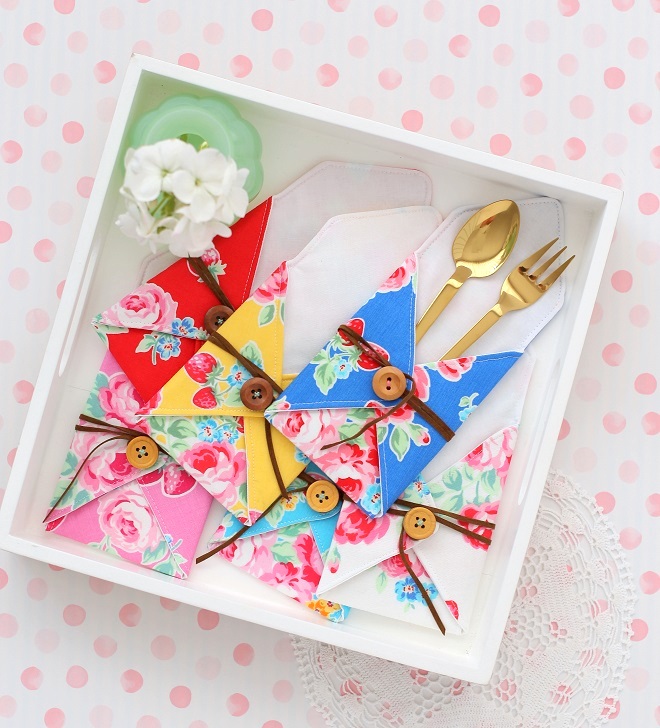 Then you’re done! It’s just that easy to make fabric utensil holders to
